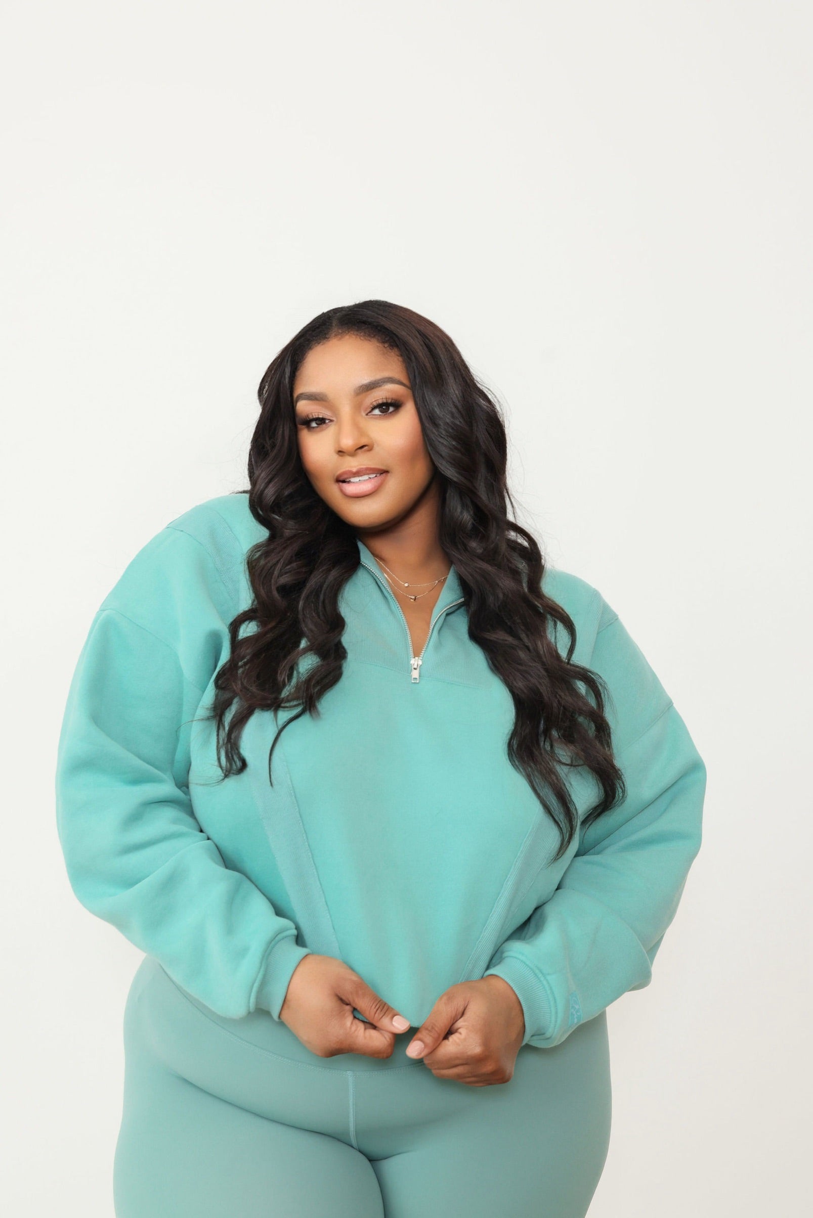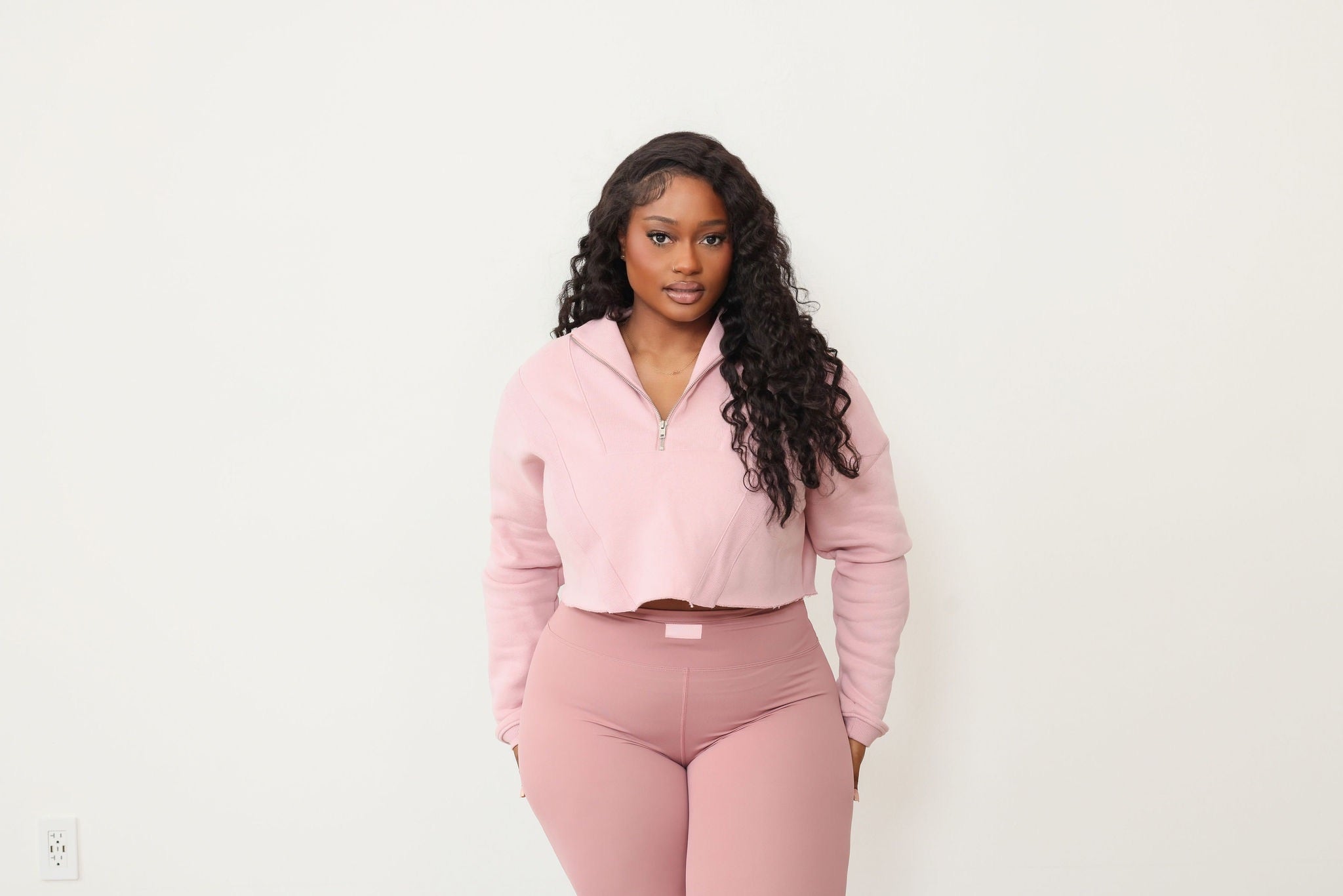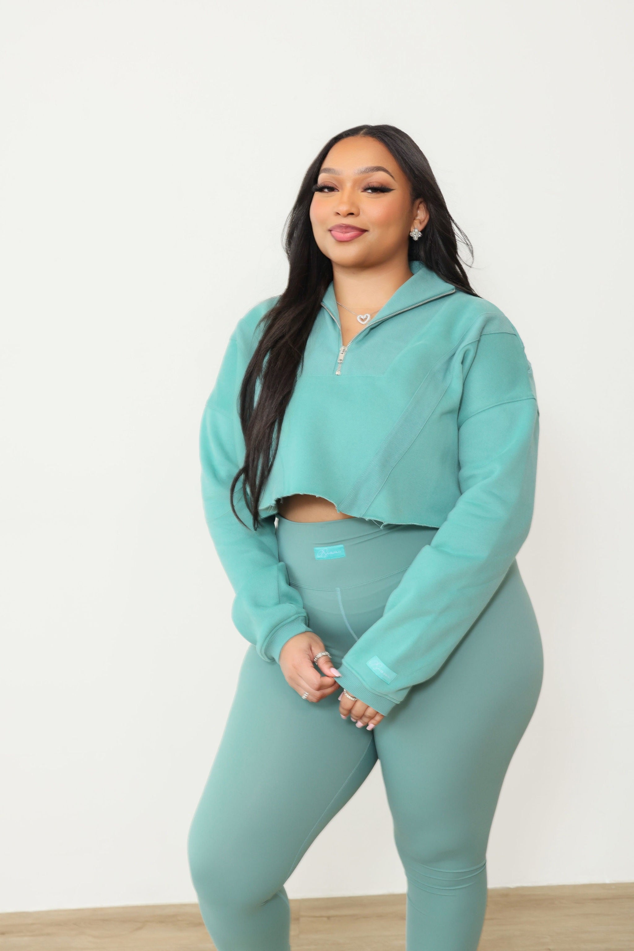Introducing the Luxe Leggings + Cropped Sweater Set, your ultimate "errands in style" ensemble for the fall season. This set features a cropped sweater, exquisitely lined with fleece and adorned with raw edges, delivering a trendy, edgy vibe. Elevate the look by pairing it with a chic bralette underneath. As for the leggings, they redefine comfort, offering superb stretch and complete squat-proof assurance, ensuring no see-through surprises. To accommodate our tall ladies, we've added extra length, ensuring a perfect fit for all. Say hello to your new go-to outfit for a blend of fashion and functionality.